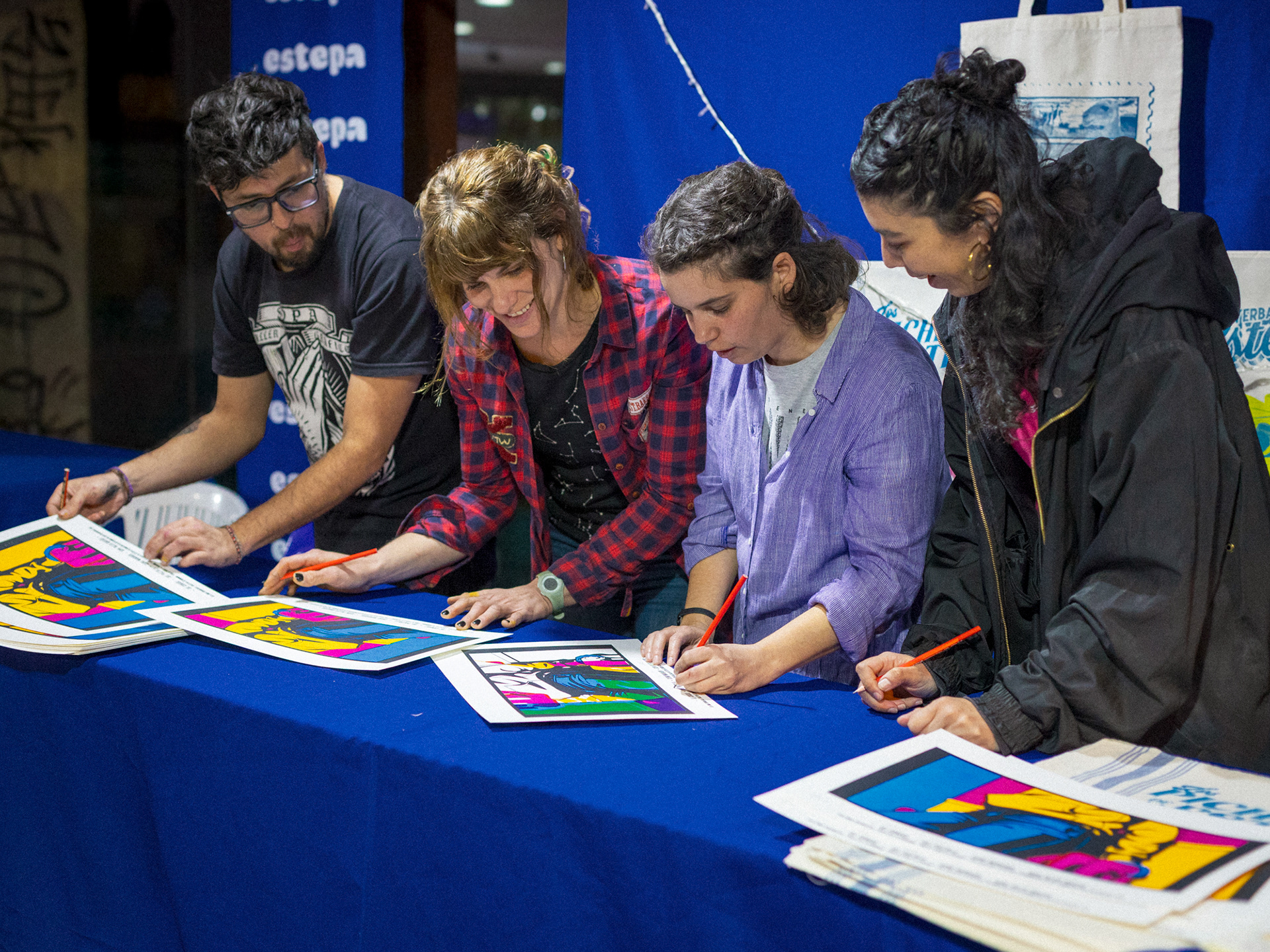 Hubo gastronomía por Copetín, mesita de trueque, serigrafía en vivo en cuatricromía de la mano de SOPA y tres serigrafistas invitadxs, números para sorteos, álbumes de figuritas y muchísima gente recorriendo el espacio.